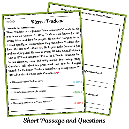 Pierre Trudeau | Short Reading Comprehension Creative Worksheet