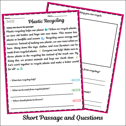Plastic Recycling | Short Reading Comprehension Creative Worksheet