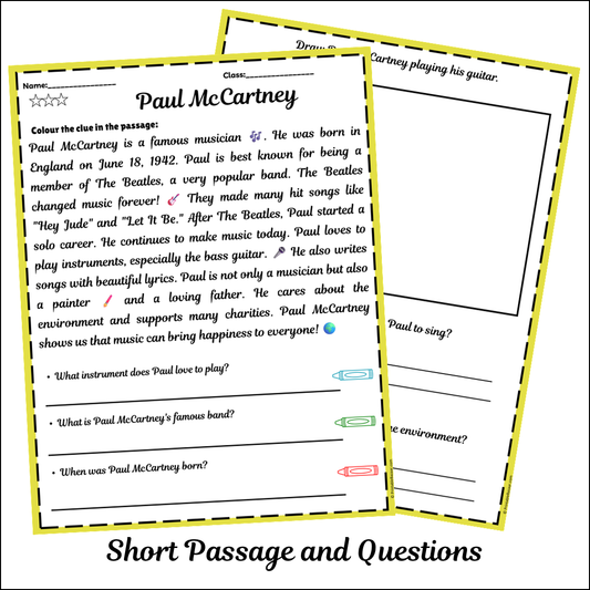 Paul McCartney | Short Reading Comprehension Creative Worksheet