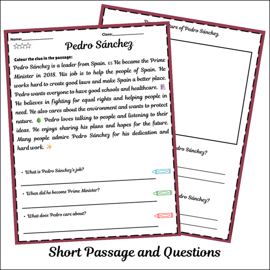 Pedro Sánchez | Short Reading Comprehension Creative Worksheet