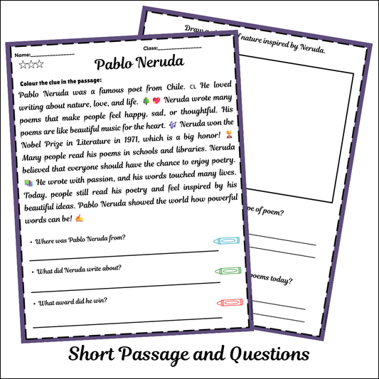 Pablo Neruda | Short Reading Comprehension Creative Worksheet
