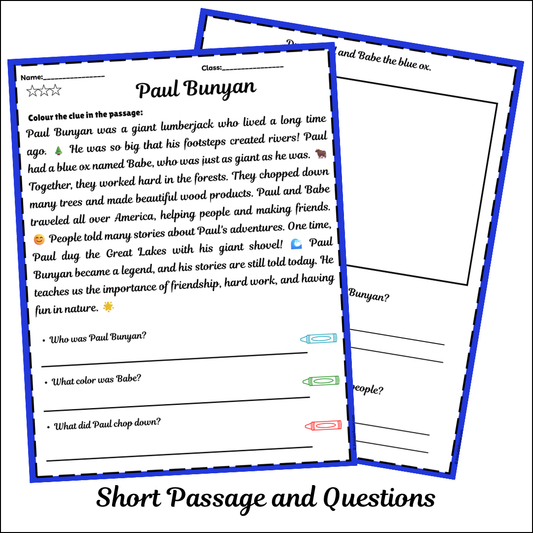 Paul Bunyan | Short Reading Comprehension Creative Worksheet