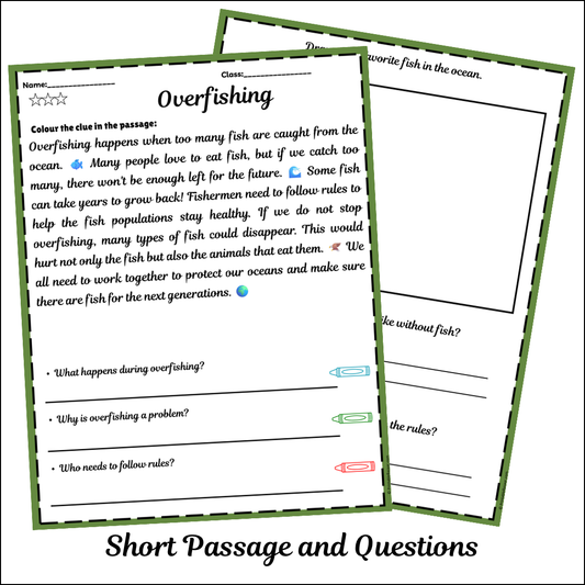 Overfishing | Short Reading Comprehension Creative Worksheet