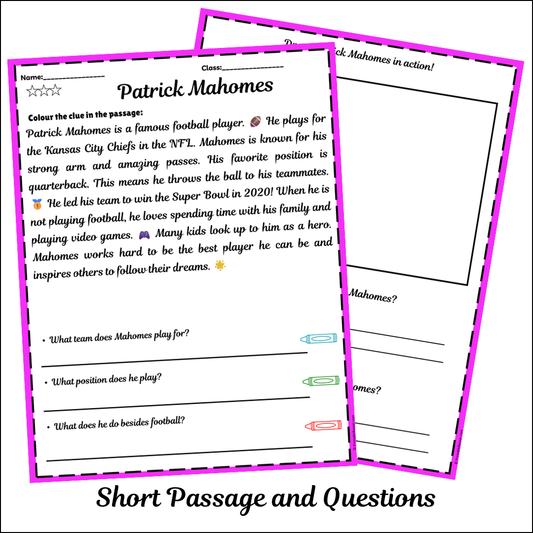 Patrick Mahomes | Short Reading Comprehension Creative Worksheet