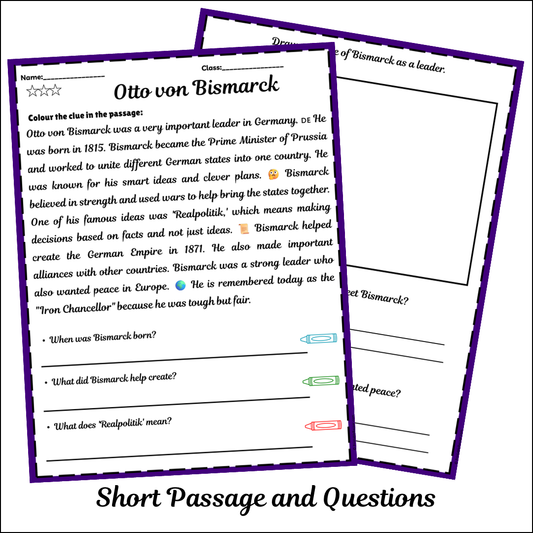 Otto von Bismarck | Short Reading Comprehension Creative Worksheet