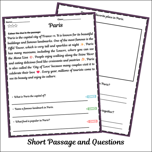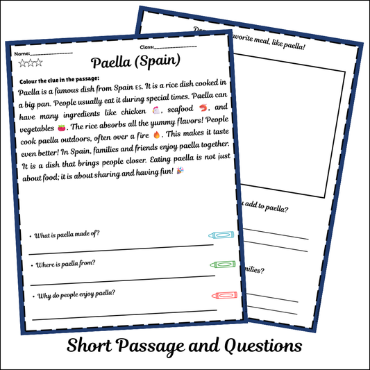 Paella (Spain) | Short Reading Comprehension Creative Worksheet