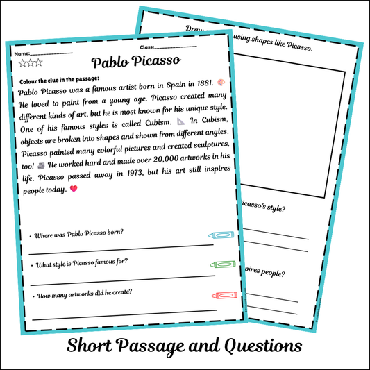 Pablo Picasso | Short Reading Comprehension Creative Worksheet