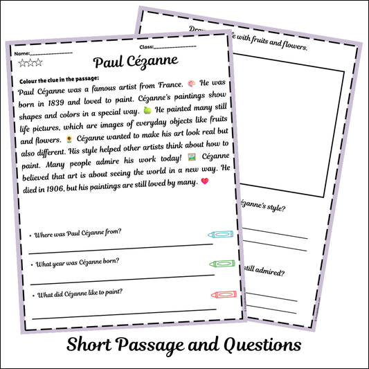 Paul Cézanne | Short Reading Comprehension Creative Worksheet