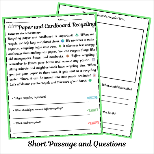 Paper and Cardboard Recycling | Short Reading Comprehension Creative Worksheet