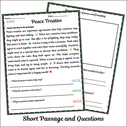 Peace Treaties | Short Reading Comprehension Creative Worksheet