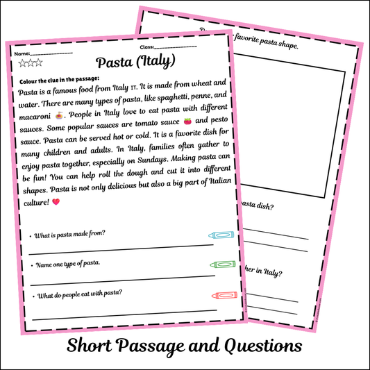 Pasta (Italy) | Short Reading Comprehension Creative Worksheet