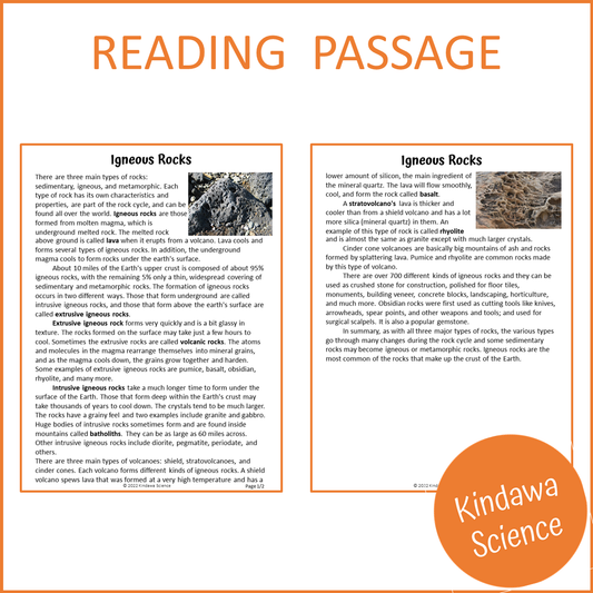 Igneous Rocks Reading Comprehension Passage and Questions | Printable PDF