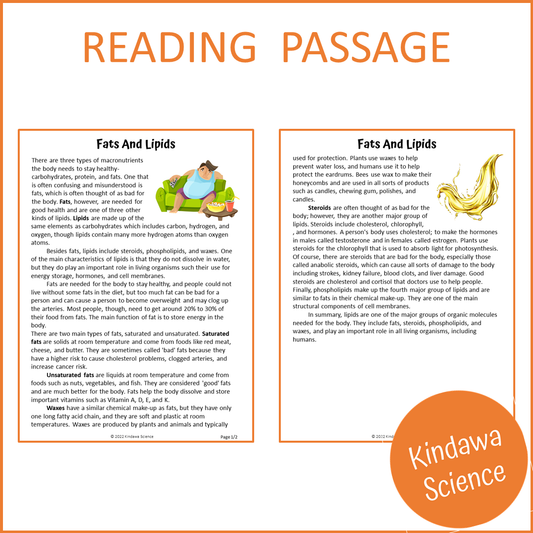 Fats And Lipids Reading Comprehension Passage and Questions | Printable PDF
