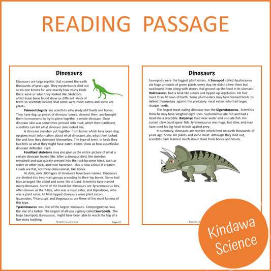 Dinosaurs Reading Comprehension Passage and Questions | Printable PDF