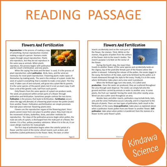 Flowers And Fertilization Reading Comprehension Passage and Questions | Printable PDF