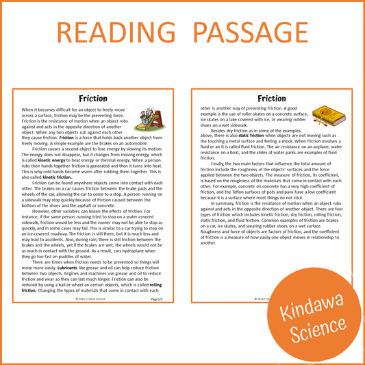 Friction Reading Comprehension Passage and Questions | Printable PDF