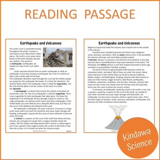 Earthquake And Volcanoes Reading Comprehension Passage and Questions | Printable PDF