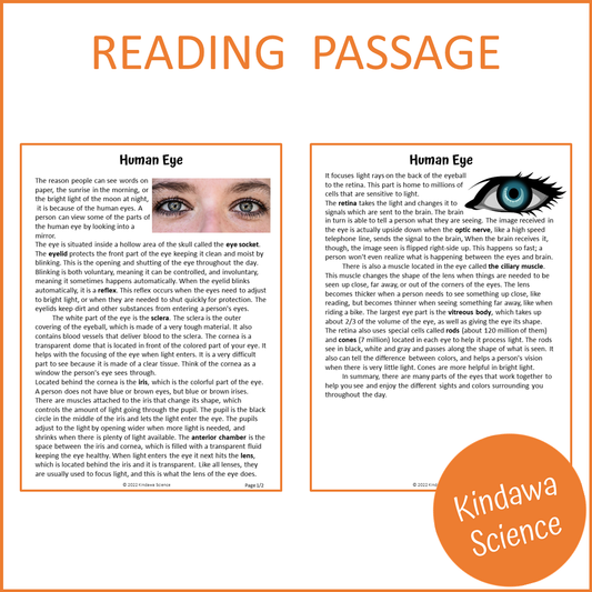 Human Eye Reading Comprehension Passage and Questions | Printable PDF