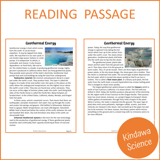 Geothermal Energy Reading Comprehension Passage and Questions | Printable PDF