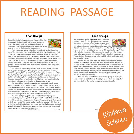 Food Groups Reading Comprehension Passage and Questions | Printable PDF