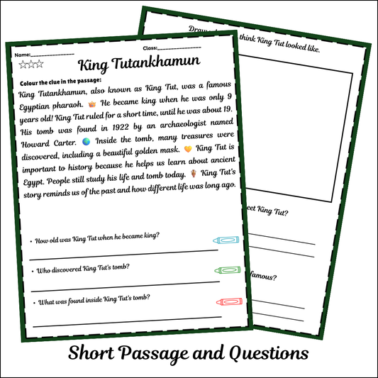 King Tutankhamun | Short Reading Comprehension Creative Worksheet