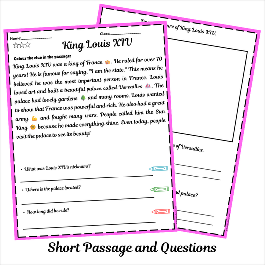 King Louis XIV | Short Reading Comprehension Creative Worksheet