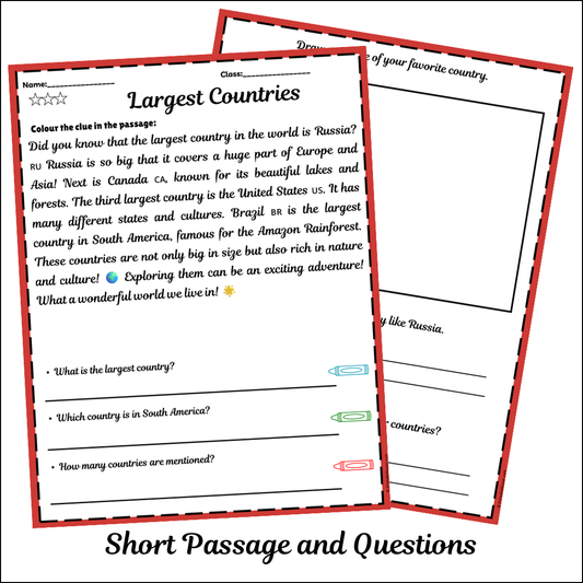 Largest Countries | Short Reading Comprehension Creative Worksheet