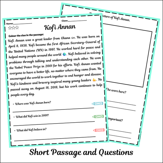 Kofi Annan | Short Reading Comprehension Creative Worksheet