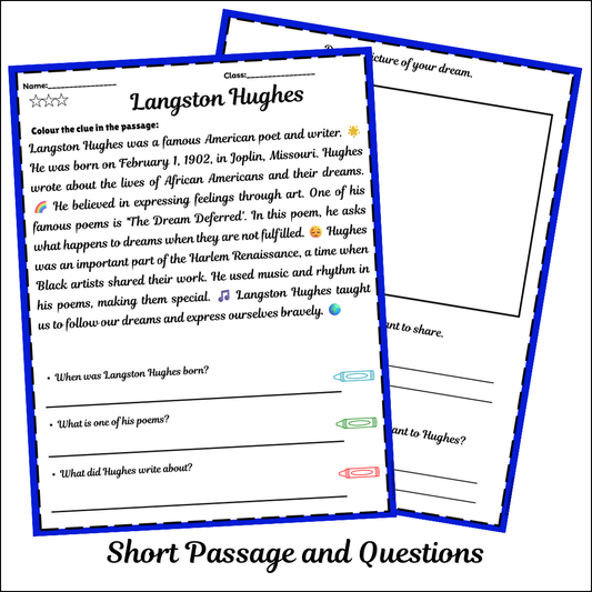 Langston Hughes | Short Reading Comprehension Creative Worksheet
