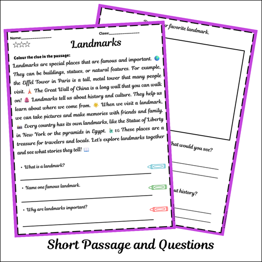 Landmarks | Short Reading Comprehension Creative Worksheet
