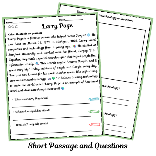 Larry Page | Short Reading Comprehension Creative Worksheet