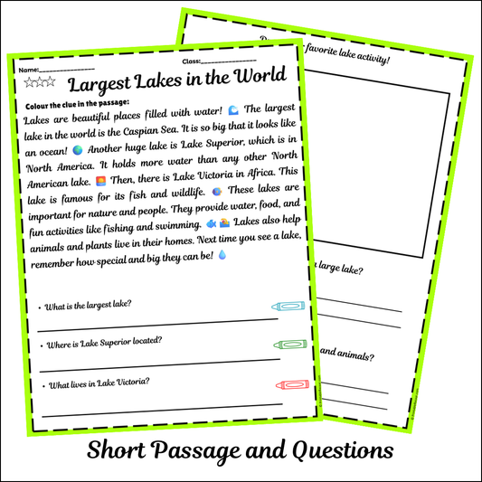 Largest Lakes in the World | Short Reading Comprehension Creative Worksheet