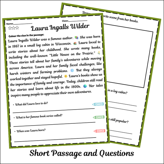 Laura Ingalls Wilder | Short Reading Comprehension Creative Worksheet