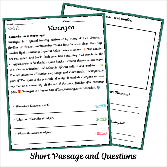 Kwanzaa | Short Reading Comprehension Creative Worksheet