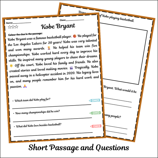 Kobe Bryant | Short Reading Comprehension Creative Worksheet