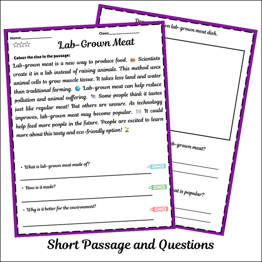 Lab-Grown Food | Short Reading Comprehension Creative Worksheet