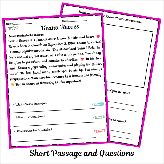 Keanu Reeves | Short Reading Comprehension Creative Worksheet