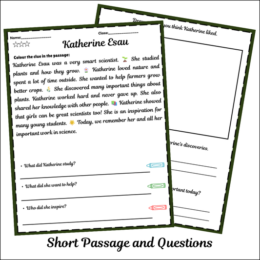 Katherine Esau | Short Reading Comprehension Creative Worksheet