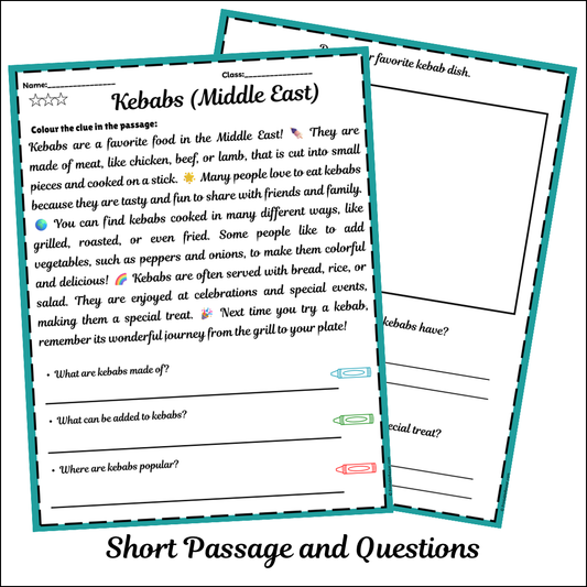 Kebabs (Middle East) | Short Reading Comprehension Creative Worksheet