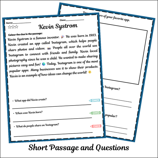 Kevin Systrom | Short Reading Comprehension Creative Worksheet