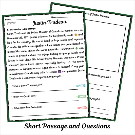 Justin Trudeau | Short Reading Comprehension Creative Worksheet