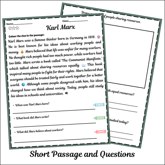 Karl Marx | Short Reading Comprehension Creative Worksheet