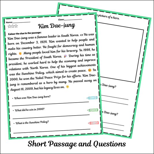 Kim Dae-jung | Short Reading Comprehension Creative Worksheet