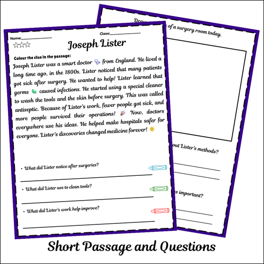 Joseph Lister | Short Reading Comprehension Creative Worksheet