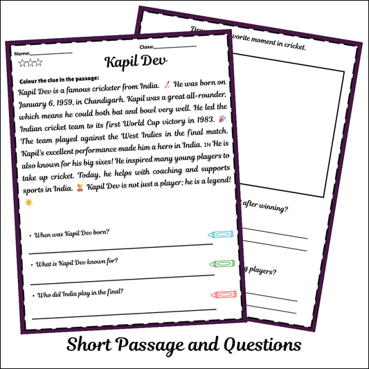 Kapil Dev | Short Reading Comprehension Creative Worksheet