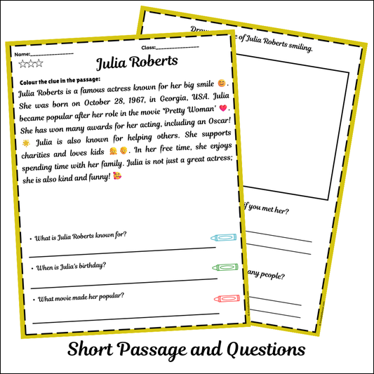 Julia Roberts | Short Reading Comprehension Creative Worksheet