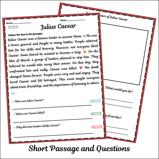 Julius Caesar | Short Reading Comprehension Creative Worksheet