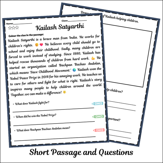 Kailash Satyarthi | Short Reading Comprehension Creative Worksheet