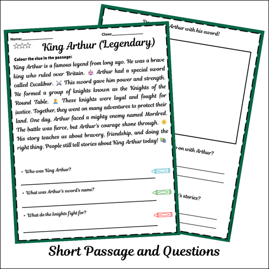 King Arthur (Legendary) | Short Reading Comprehension Creative Worksheet