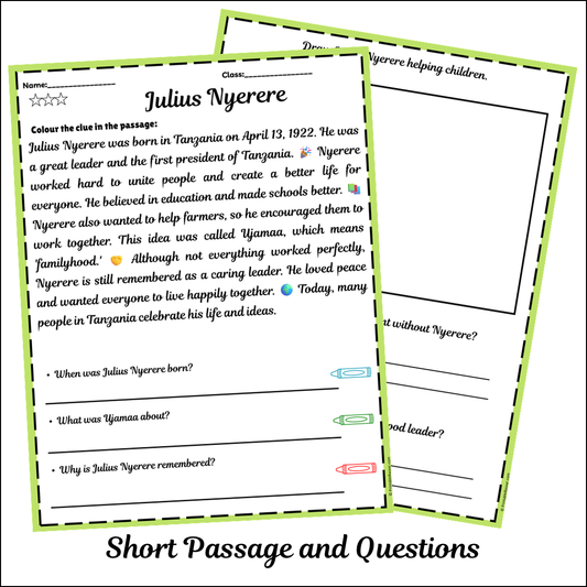 Julius Nyerere | Short Reading Comprehension Creative Worksheet